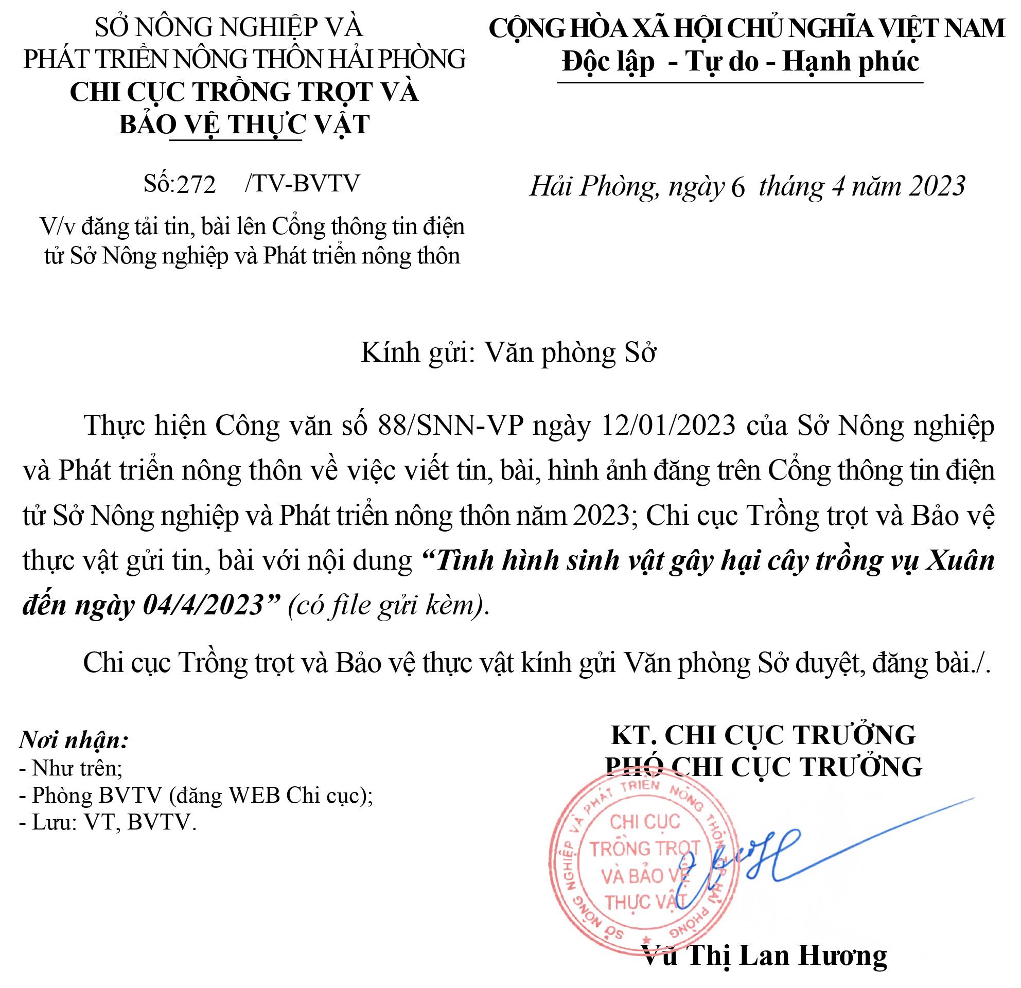 Chi cục Trồng trọt và Bảo vệ thực vật ban hành công văn về việc đăng tải tin, bài lên Cổng thông tin điện tử Sở Nông nghiệp và Phát triển nông thôn 06042023