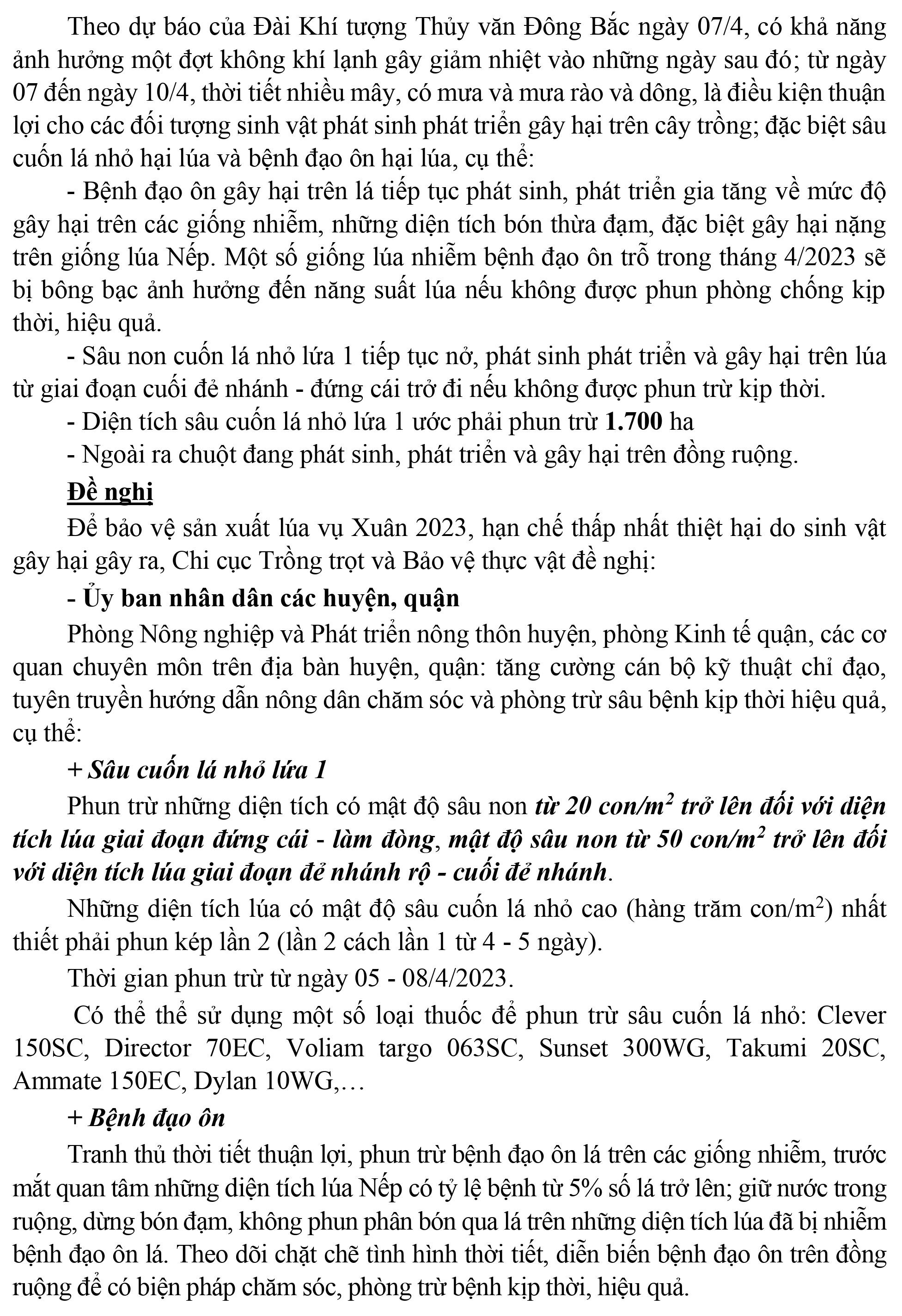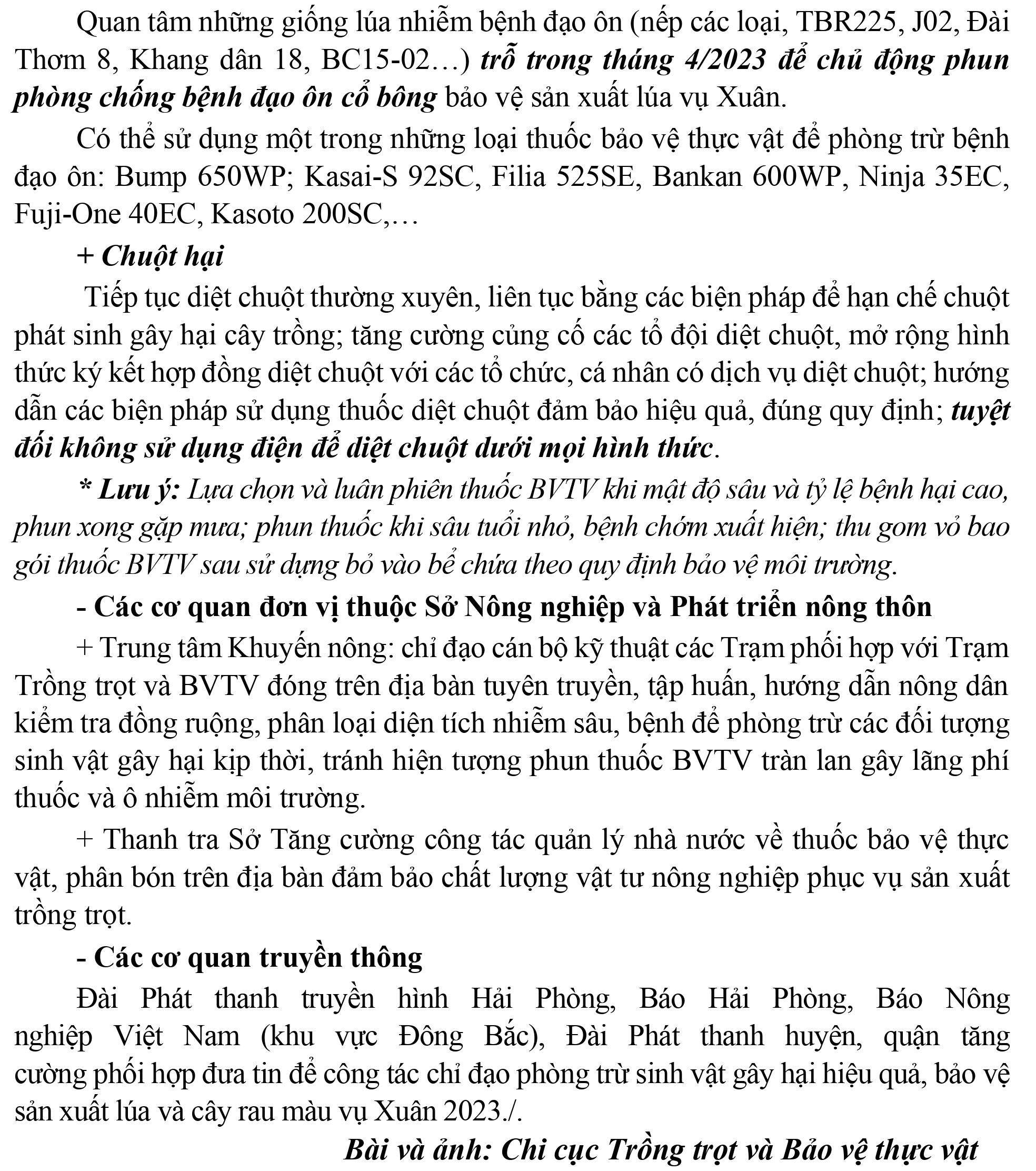 Chi cục Trồng trọt và Bảo vệ thực vật ban hành công văn về việc đăng tải tin,...
